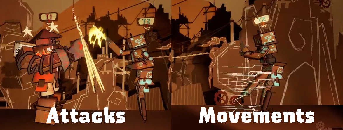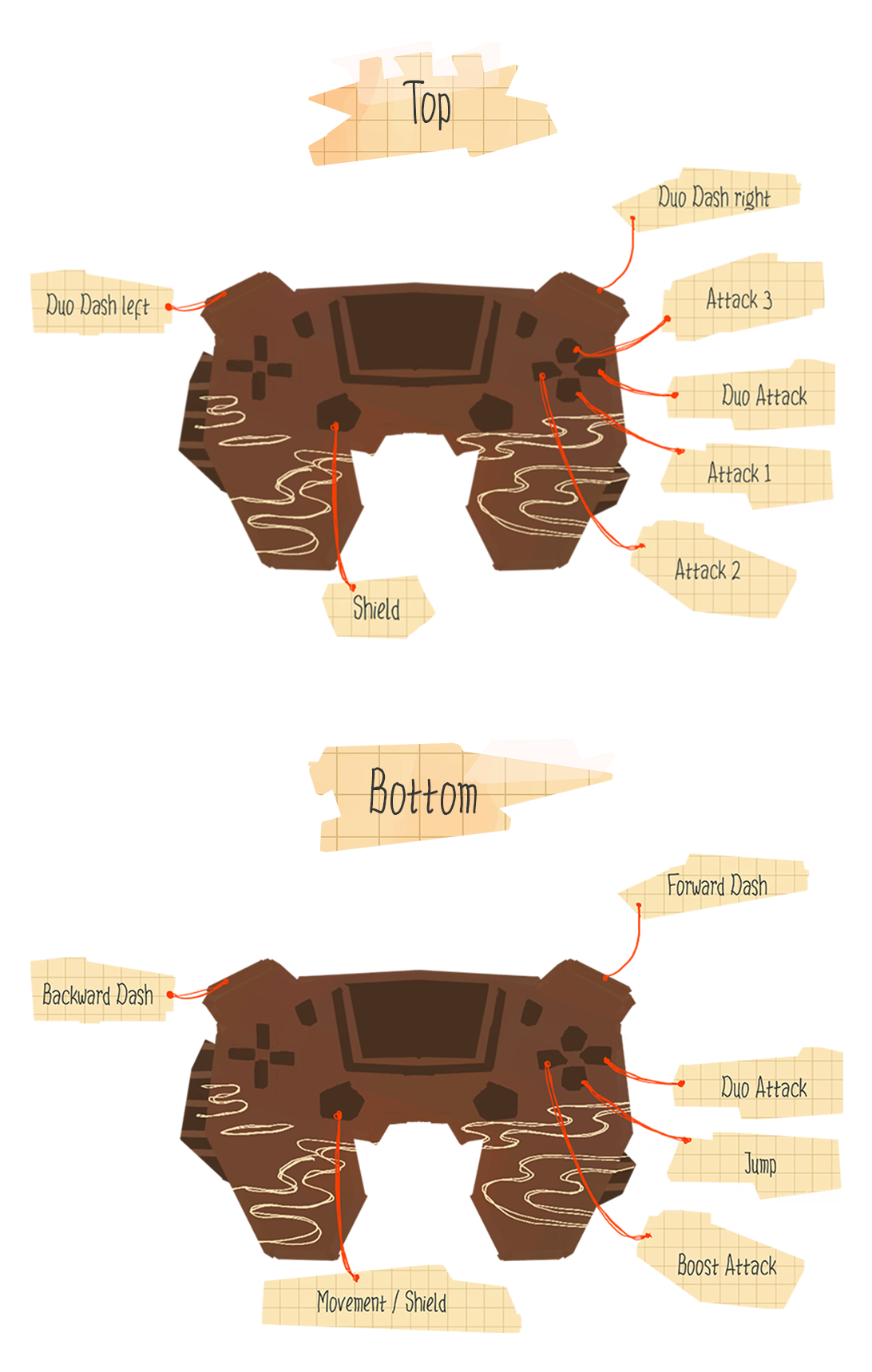 - "Duo attacks" : charging method that depends on the lower body, while its nature depends on the upper body